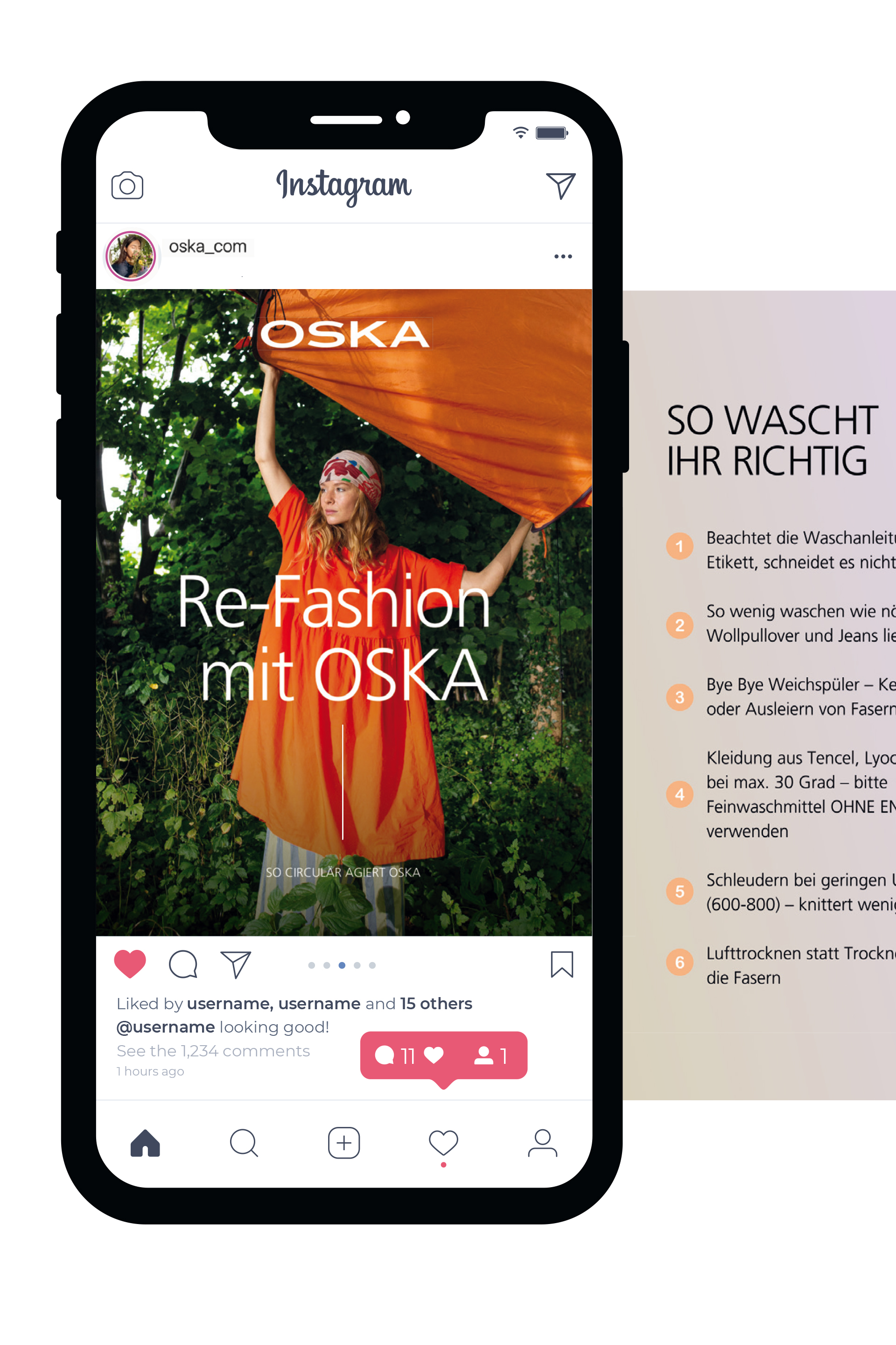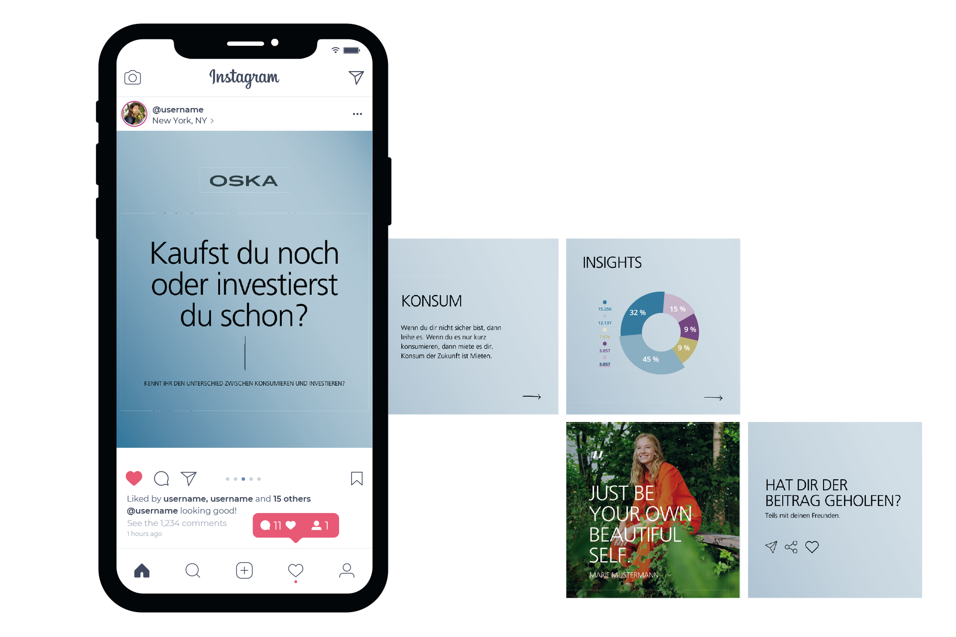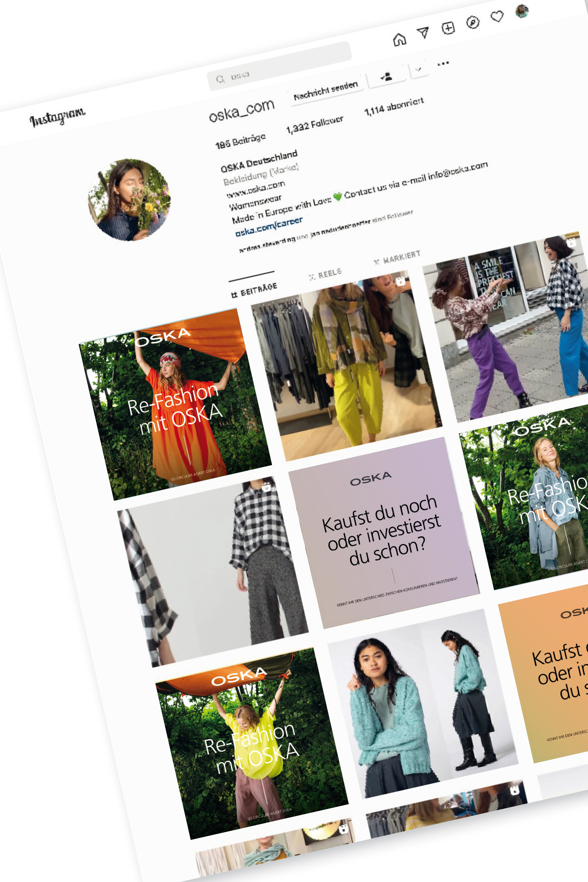 Dieses Projekt setzen wir mit Janine Dudenhöffer um. Zusammen organisieren im wöchentlichen Newsroom das Content Management und die Content Creation. Wir produzieren Post und Reels rund um die Marke OSKA und steigern Reichweite.
